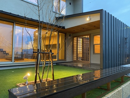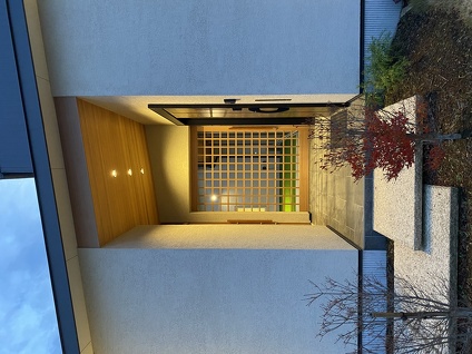 秋のシーズンとなりましたね。 暑い暑い夏もようやく終わり朝晩は肌寒い日も増えてきました。 夕刻近くにモデルハウスへご来場いただくと夜の雰囲気も楽しめますよ。 ポーチ周りの柔らかい光が格子戸を引き立たせています。 また中庭のシンボル樹を照らすスポットライトは夕刻のひと時をホッとした憩いの空間へと演出してくれます。 通常は10時~17時に開場しているモデルハウスですが、事前予約いただければ時間外でもご案内させていただきます。 ぜひ、お声掛けください。お待ちしております。