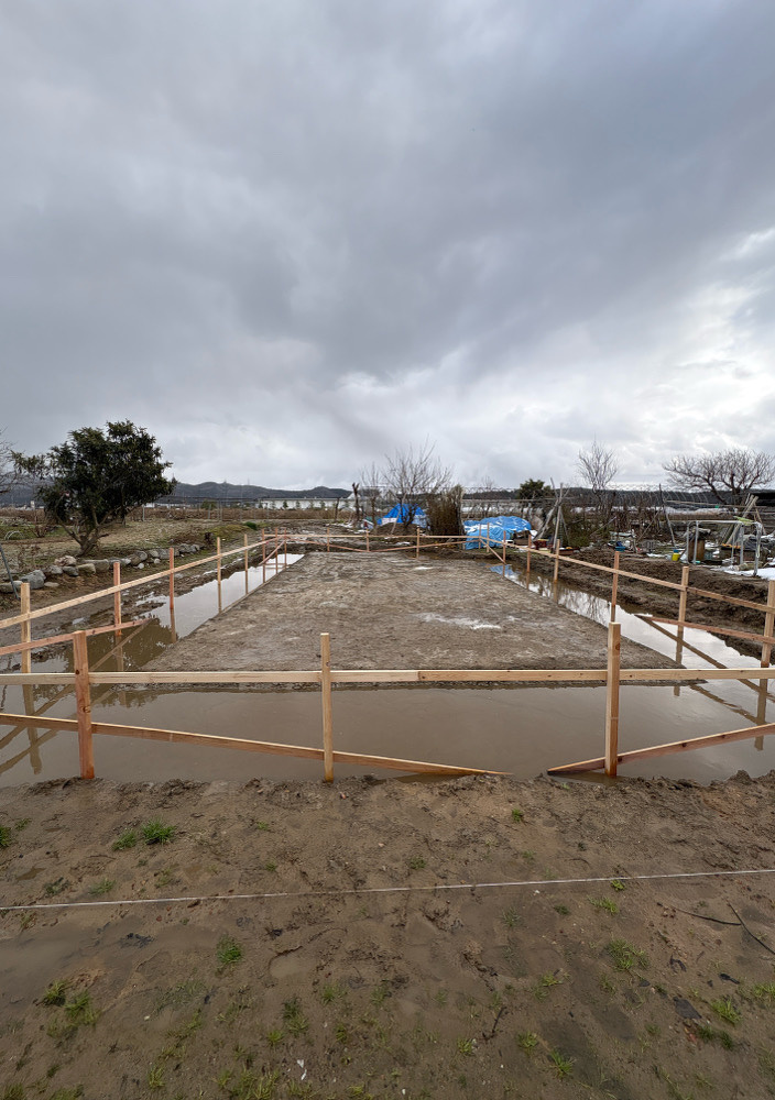 2026年の仕事始めは「丁張り出し」からのスタートでした。吹雪の中での作業を覚悟して家を出てきましたが意外と雪が降りだす前に作業を完了することが出来て良かったです。