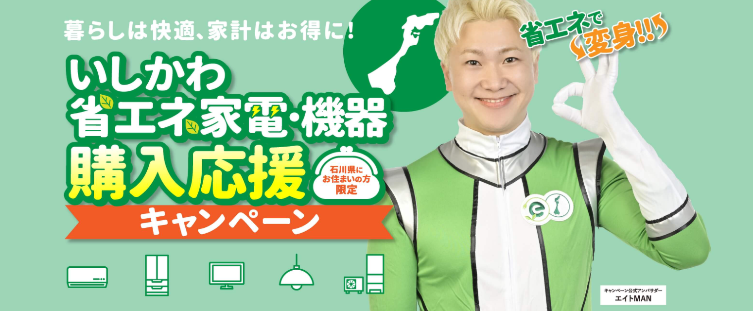 現在、石川県では「いしかわ省エネ家電・機器購入応援キャンペーン」を実施中!